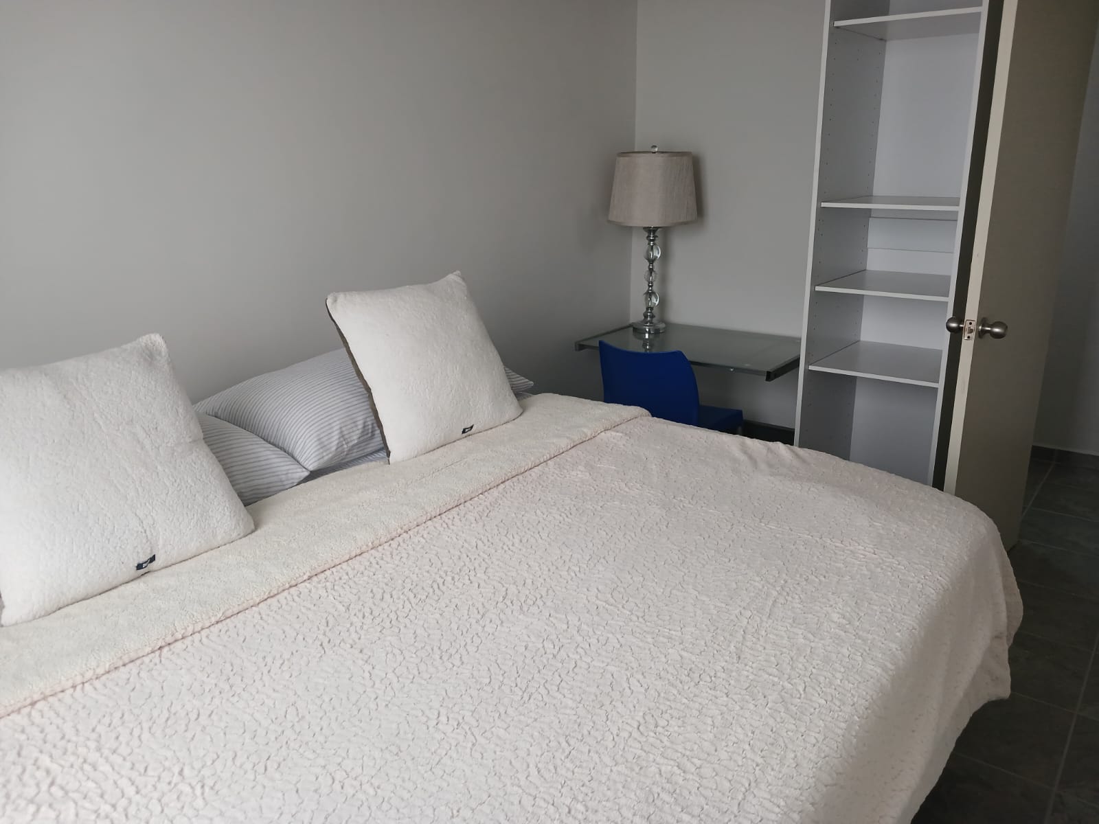 - Cuarto 2: Cama individual, closet y baño completo compartido