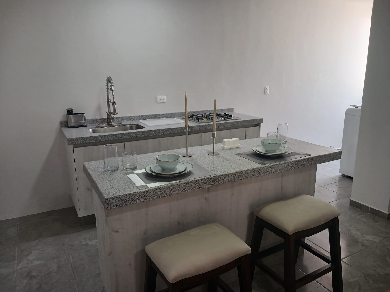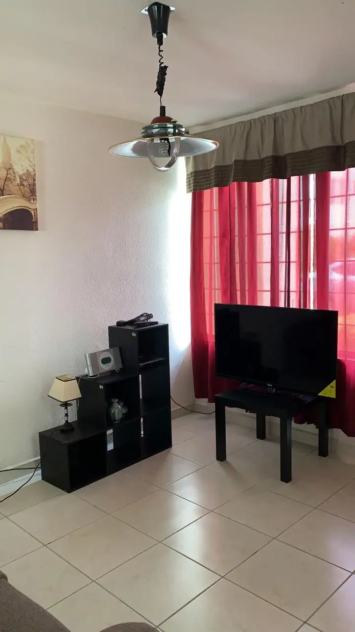 ¿Qué incluye?: 2 recamaras, Cocina con barra de servicio, Área Lavado, Terraza, Baño Completo, Sala, Amueblado (incluye trastes, accesorios cocina, ropa de cama), 1 cama King Size con closet, 1 cama Individual con closet, Ventiladores de techo, Sillón 3 plazas, Microondas, Cocina con estufa/Refrigerador, Barra de servicio con 2 bancos, Lavadora/calentador de agua, 2 escritorios de trabajo, TV, WiFi