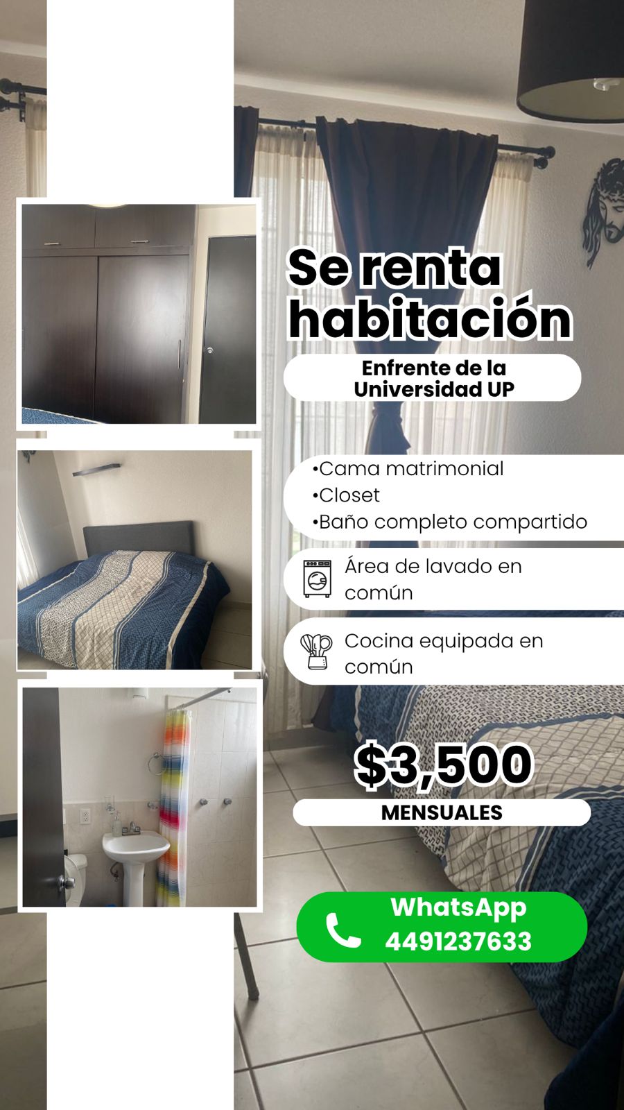 - Cuarto 1: $3,700 MXN